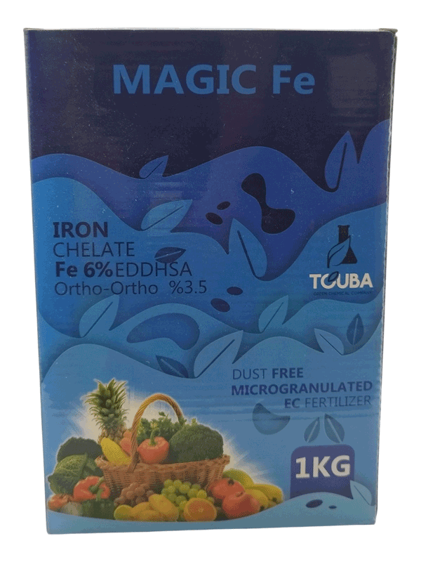 آهن (Fe) یک ریزمغذی ضروری برای گیاهان است که در فرآیندهای حیاتی مانند تولید کلروفیل، فتوسنتز، تنفس سلولی، و متابولیسم نیتروژن نقش دارد. کمبود آهن، بهویژه در خاکهای قلیایی با pH بالا، باعث کاهش جذب آهن و بروز کلروز (زردی بینرگبرگی) میشود. کود آهن مجیک Fe-EDDHSA اورتو اورتو 3.5 با فرمولاسیون کلات پیشرفته، آهن را بهصورت قابلجذب در دسترس گیاه قرار داده و این مشکلات را برطرف میکند.
