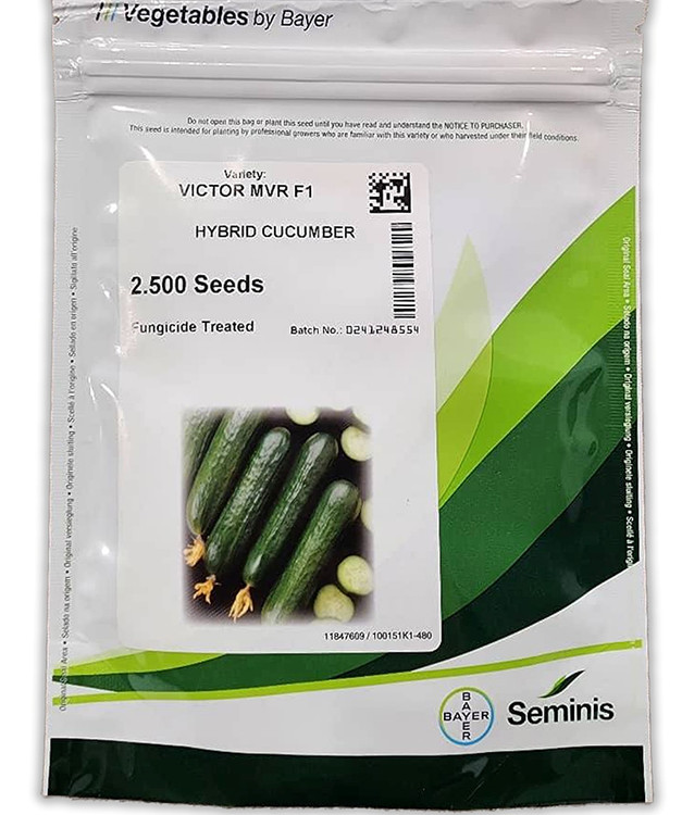 بذر خیار ویکتور محصول شرکت سمینیس آمریکا از بهترین و پر بار ترین بذر خیار فضای باز می باشد. بذر خیار ویکتور سمینیس رقمی هیبرید بوده و در بسته بندی پاکت 2500 عددی به فروش می رسد.